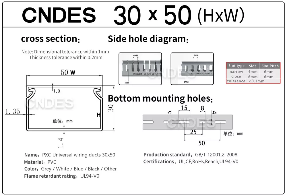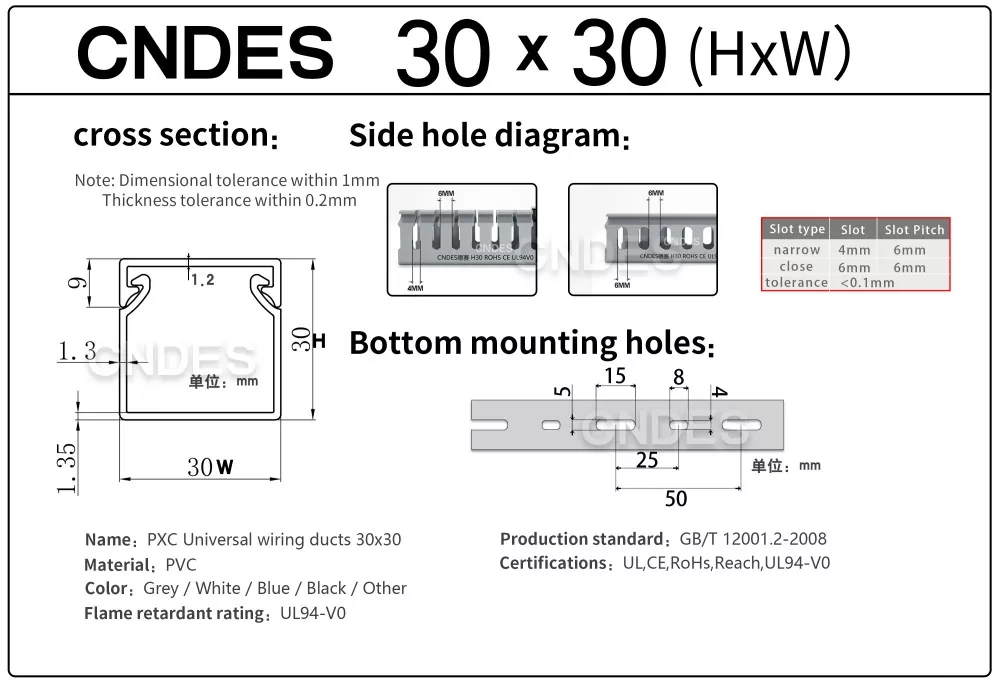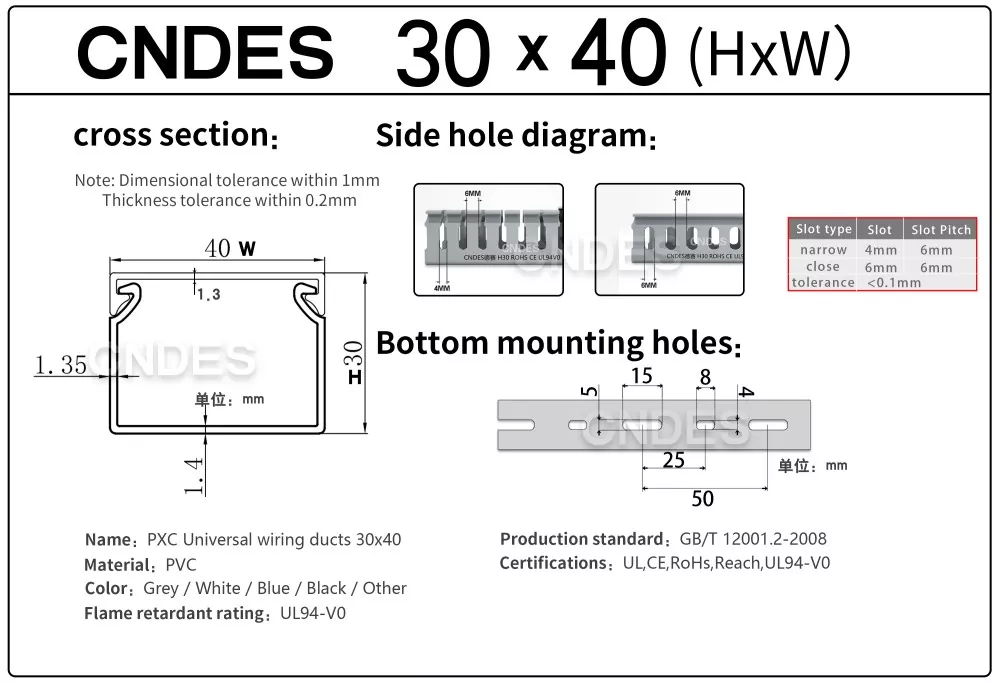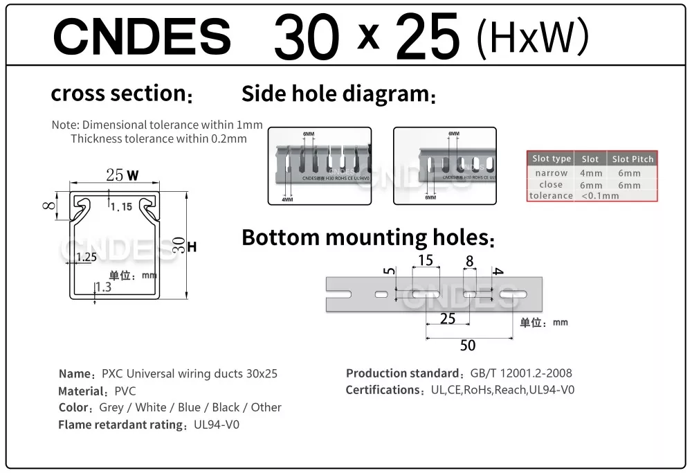 Ang aming wire duct ay nakapasa sa makapangyarihang sertipikasyon:UL, CE, RoHS, REACH,UL94V0