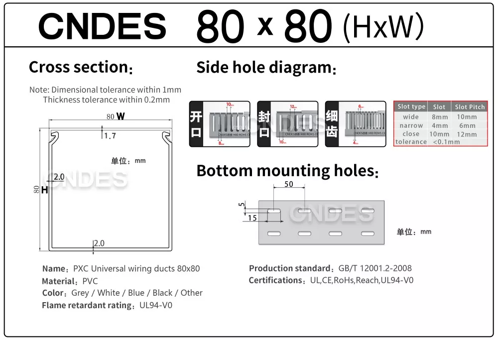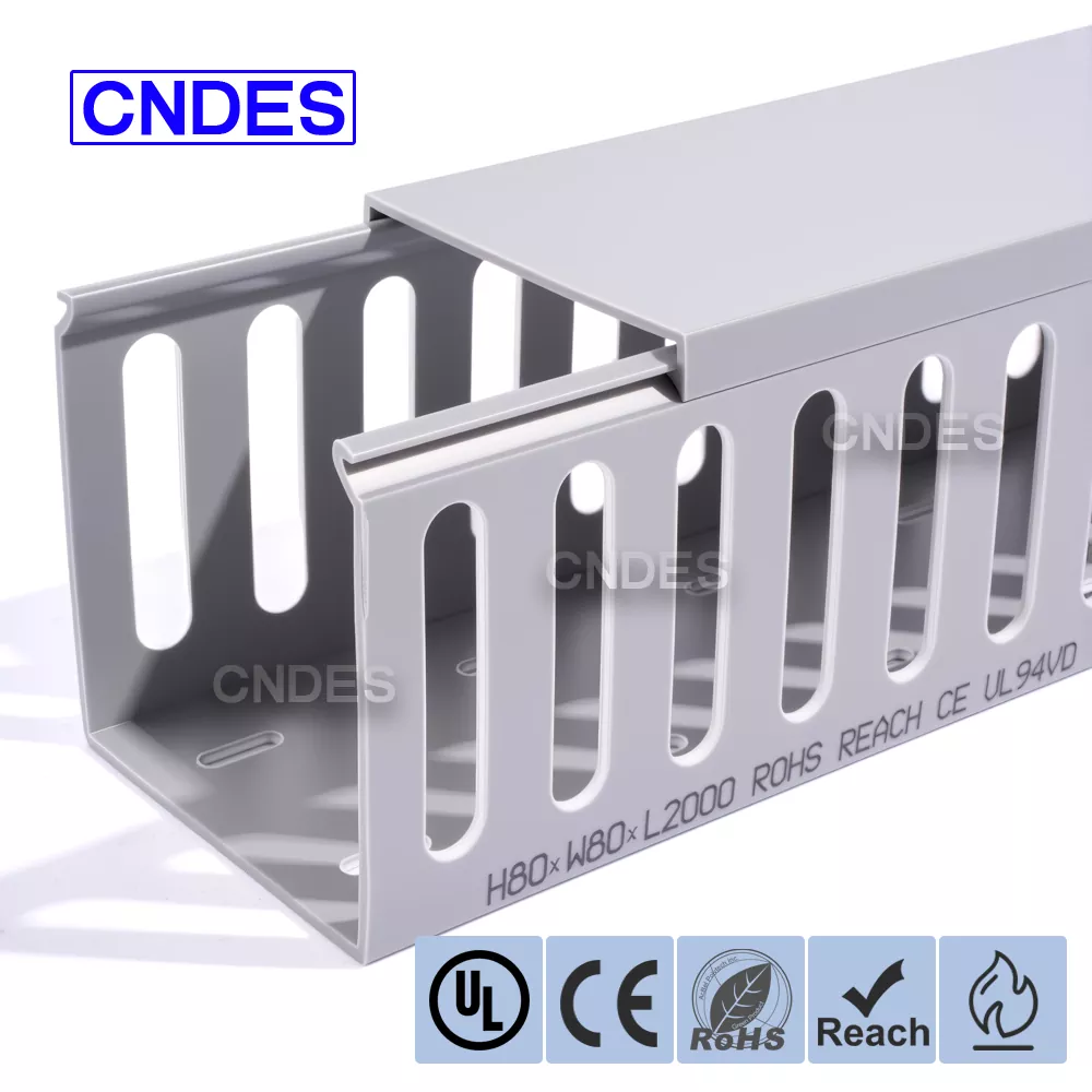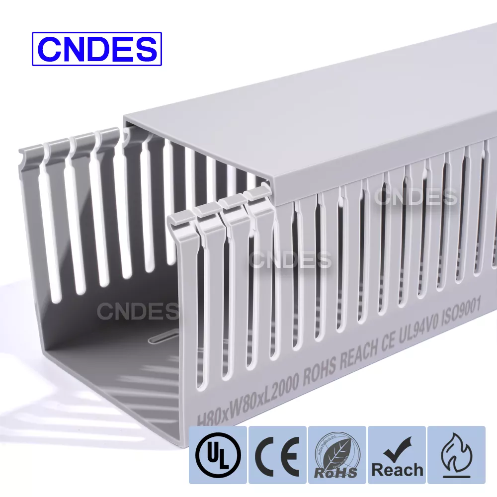 Kapag ang mga karaniwang cable tray ay nabigong tumanggap ng mga kumplikadong wiring harnesses, ang CNDES Customized 80×80 Slotted PVC Switchboard Wiring Duct ang iyong mahusay na pagpipilian. Na may malaking panloob na espasyo na 80mm*80mm, partikular itong idinisenyo para sa mga sitwasyong may mataas na demand tulad ng data center backbone cabling, industrial equipment power clusters, at sentralisadong mga wiring sa malalaking control cabinet. Madali itong tumanggap at nag-aayos ng isang malaking bilang ng mga cable, nagpaalam sa kalat at kasikipan minsan at para sa lahat.