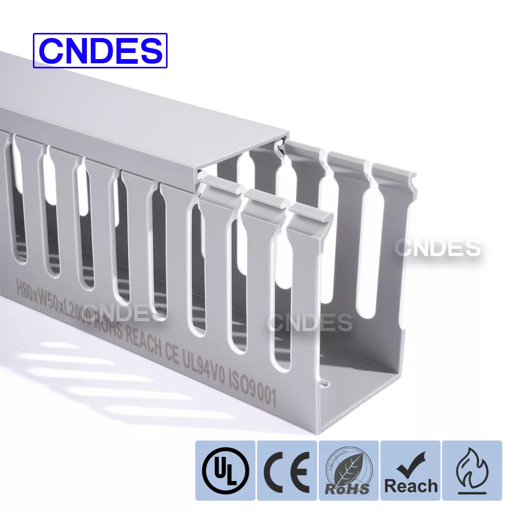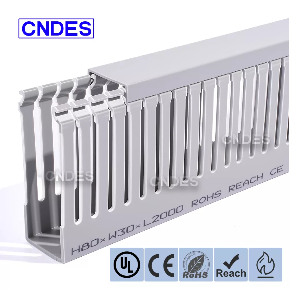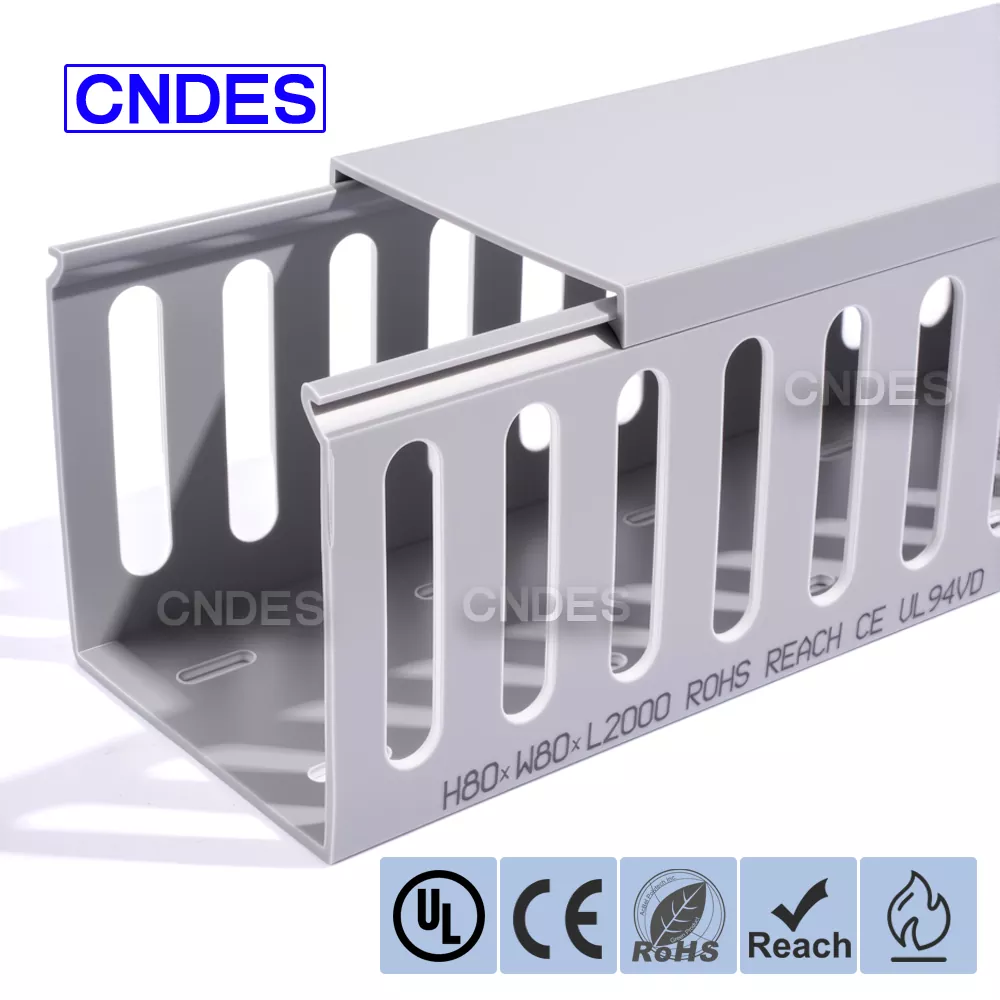 Ang Customized 80 Height Slotted PVC Automation Cable Duct mula sa CNDES ay inengineered para sa mahusay na pamamahala ng cable sa mga industrial automation system. Sa 80 mm na taas nito at may slotted na disenyo, ang duct na ito ay nagbibigay ng sapat na espasyo para sa mga high-density na mga wiring habang pinapanatiling maayos at protektado ang mga cable sa mga kumplikadong control system, PLC, at machine wiring application.
