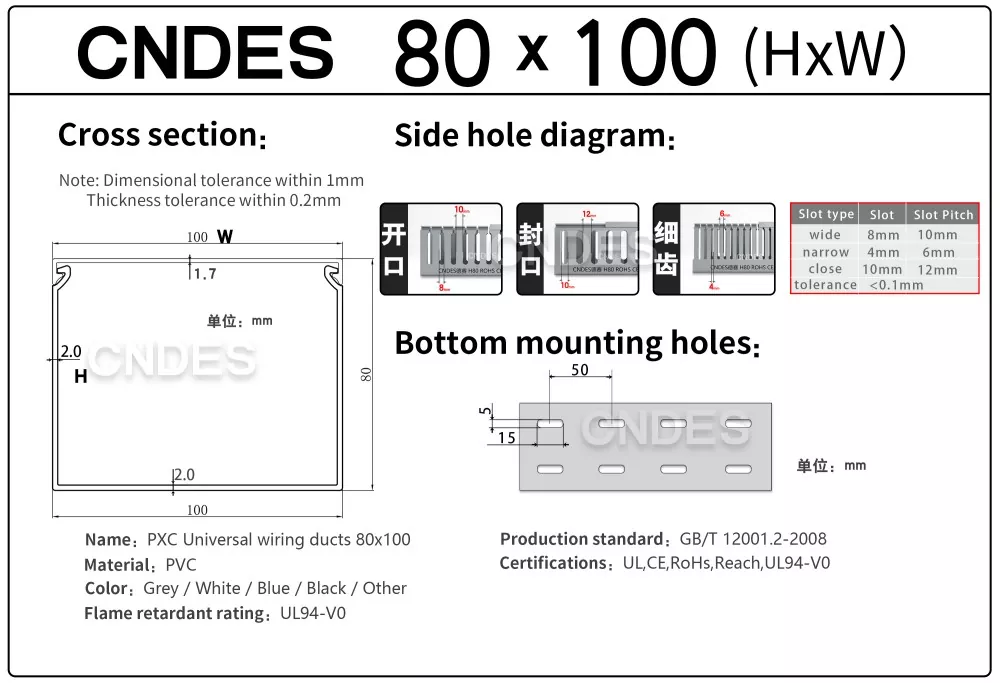 Quality Assurance: Lahat ng High-Performance 80 Height Slotted PVC Automation Cable Ducts ay certified sa ilalim ng UL,RoHS, REACH,ISO, CE, at iba pang pamantayan, na nakakatugon sa mga kinakailangan sa kapaligiran at kaligtasan. Para sa mga isyu sa kalidad (hal., cracking, deformation), nagbibigay ang mga supplier ng mga serbisyo sa pagbabalik/pagpapalit.