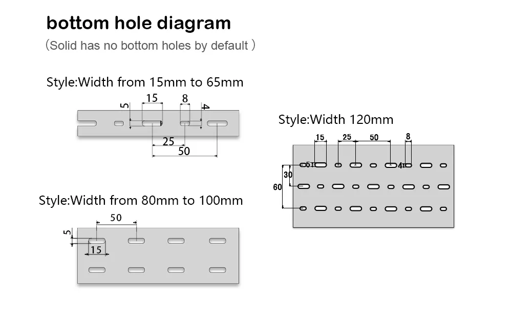 Ang mga detalye ng cable tray ay ipinahayag bilang taas * lapad, na ang unit ay mm. Una, tukuyin ang kinakailangang laki ng cable tray, tulad ng 80mm ang taas at 40mm ang lapad. Pagkatapos, piliin ang lapad ng butas sa labasan batay sa kapal ng mga kable, alinman sa malalapad na ngipin (8mm) o pinong ngipin (4mm). Inirerekomenda na ang aktwal na cable ay sumasakop ng hindi hihigit sa 70% ng espasyo ng tray.