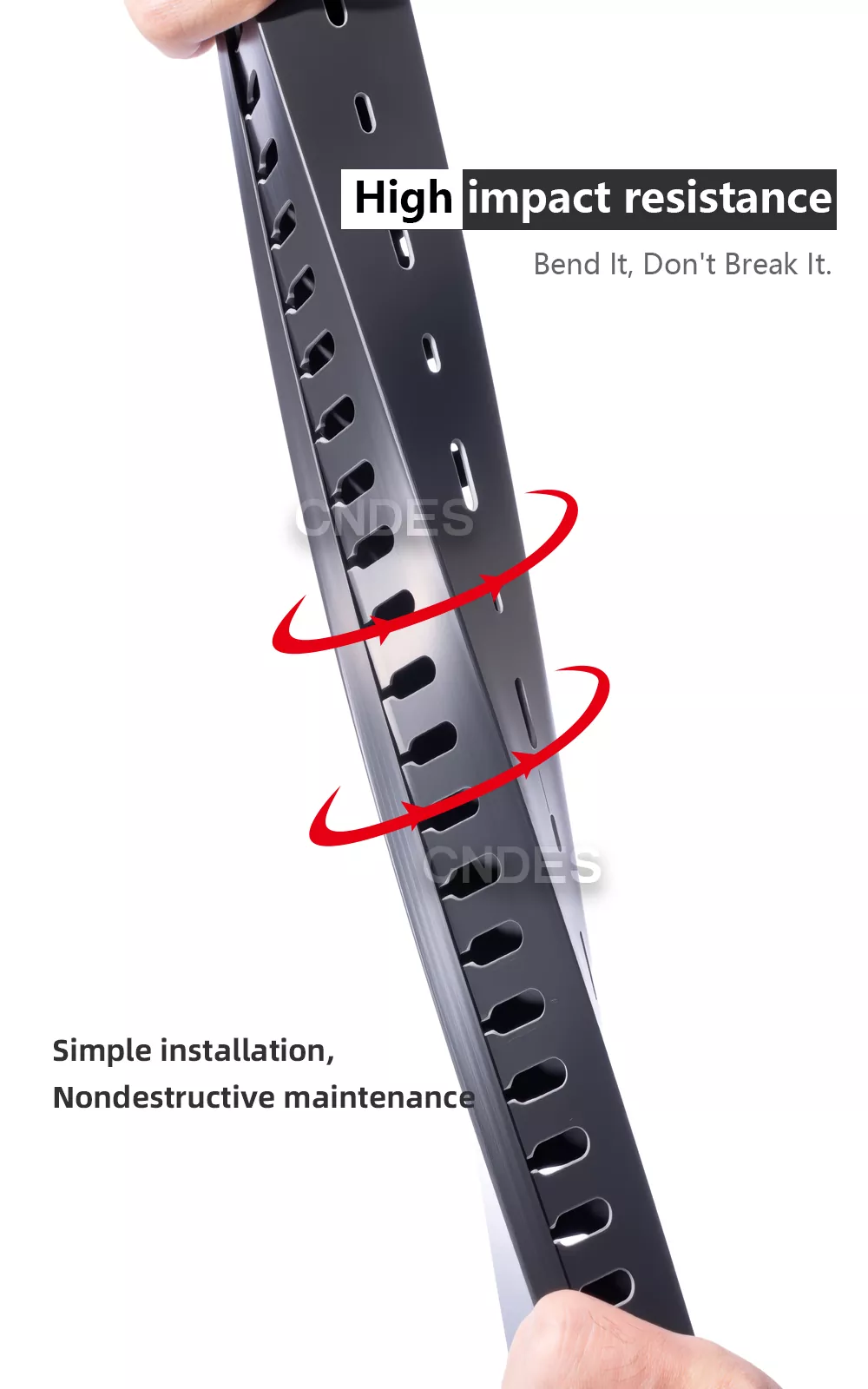 Ang CNDES, bilang isang propesyonal na R&D at pabrika ng pagmamanupaktura ng Black Slotted PVC Wiring Duct sa China, ay dalubhasa sa mass production, mahigpit na kontrol sa kalidad ng ISO at serbisyo ng OEM/ODM. Ang mga black casing ay karaniwang ginagamit sa mga sitwasyong nangangailangan ng mga nakatagong mga kable (tulad ng mga home theater o opisina) o upang makilala sa pagitan ng iba't ibang functional circuit na mataas ang boltahe (hal., na may mababang boltahe na mga linya), sa pamamagitan ng mababang boltahe na mga linya, at doon.